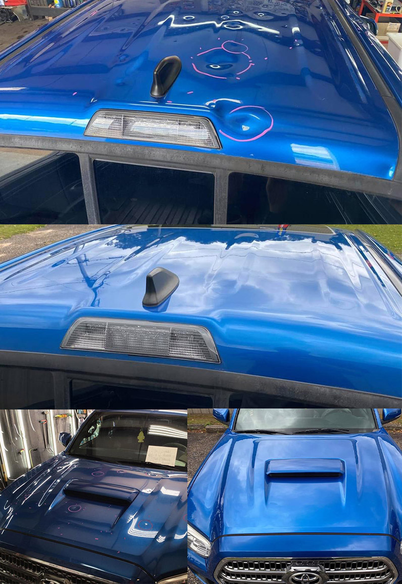 Bring your vehicle by or text us photos of the damage. We promise to inspect the affected area carefully and give you an honest assesment of the probable outcome depending on the size and nature of the dent and the condition of the factory finish where the damage has occured. In most cases, the repair will be undetectable. If perfection isn't possible, we will advise you what to expect or what your next step should be.